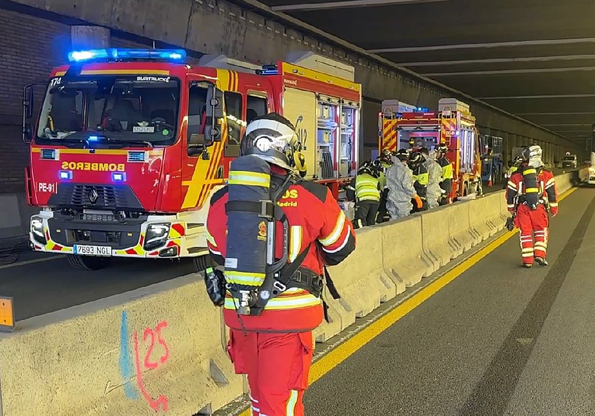 Uno de los conductores está herido sin gravedad y ya ha sido atendido por el SUMMA 112. Mientras, Bomberos de la Comunidad de Madrid y Bomberos del Ayuntamiento de Madrid trabajan en el lugar para tratar de devolver la situación a la normalidad.